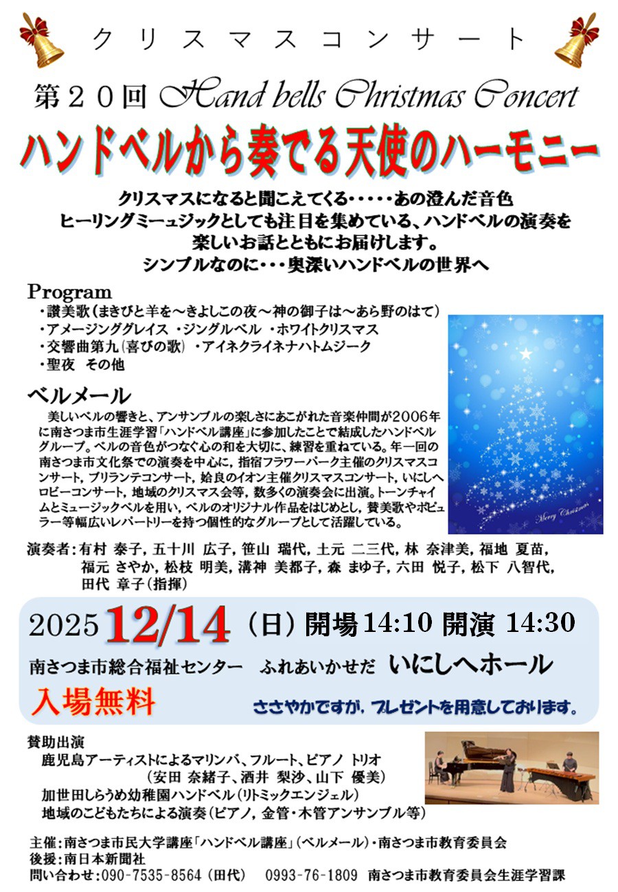 クリスマスになると聞こえてくる澄んだ音色。ヒーリングミュージックとしても注目を集めているハンドベルの演奏をお届けします。