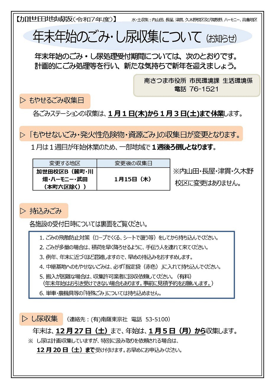 計画的にごみ処理等を行い、新たな気持ちで新年を迎えましょう。