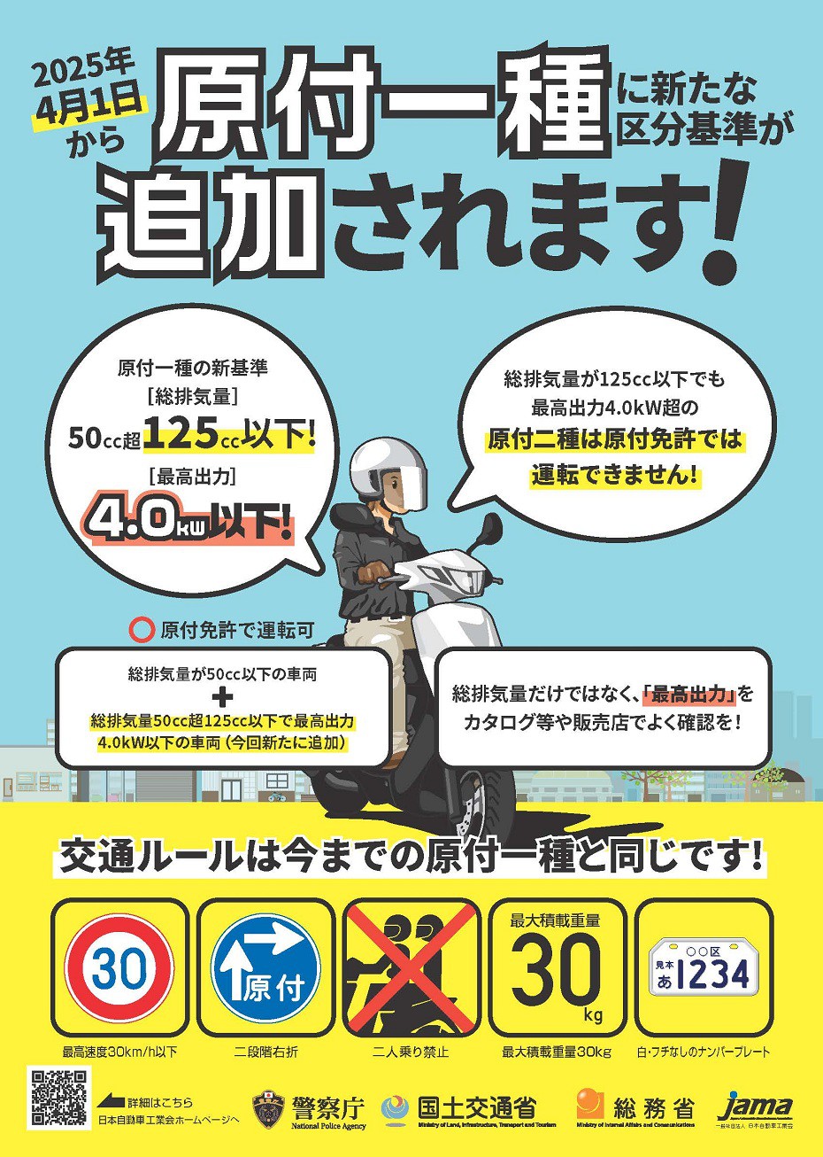 2025年4月1日から原付一種に新たな区分基準が追加されます! (PDF形式)