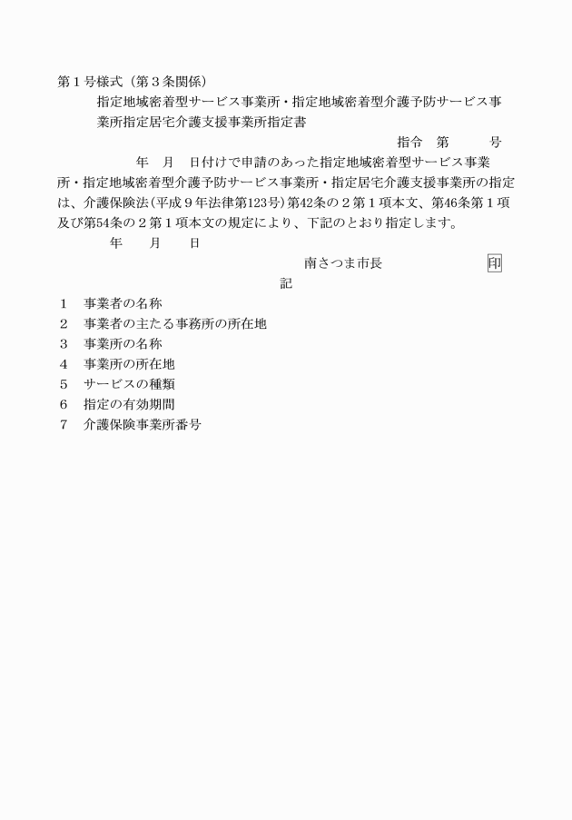 ○南さつま市指定地域密着型サービス事業所及び指定地域密着型介護予防サービス事業所並びに指定居宅介護支援事業所の指定等に関する規則