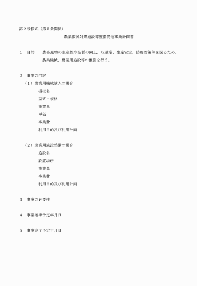(1) 農業振興対策施設等整備促進事業計画書(第2号様式)