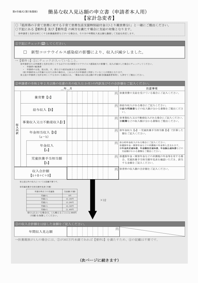 (児童扶養手当受給者に対する給付金(ひとり親世帯分)の支給の申込み等)