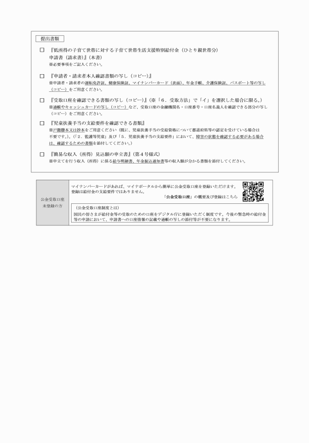 (児童扶養手当受給者に対する給付金(ひとり親世帯分)の支給の申込み等)