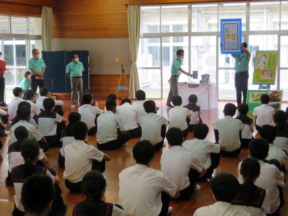 7月15日には、加世田中学校で贈呈式を行い、お茶の成分や効果などについて説明しました。