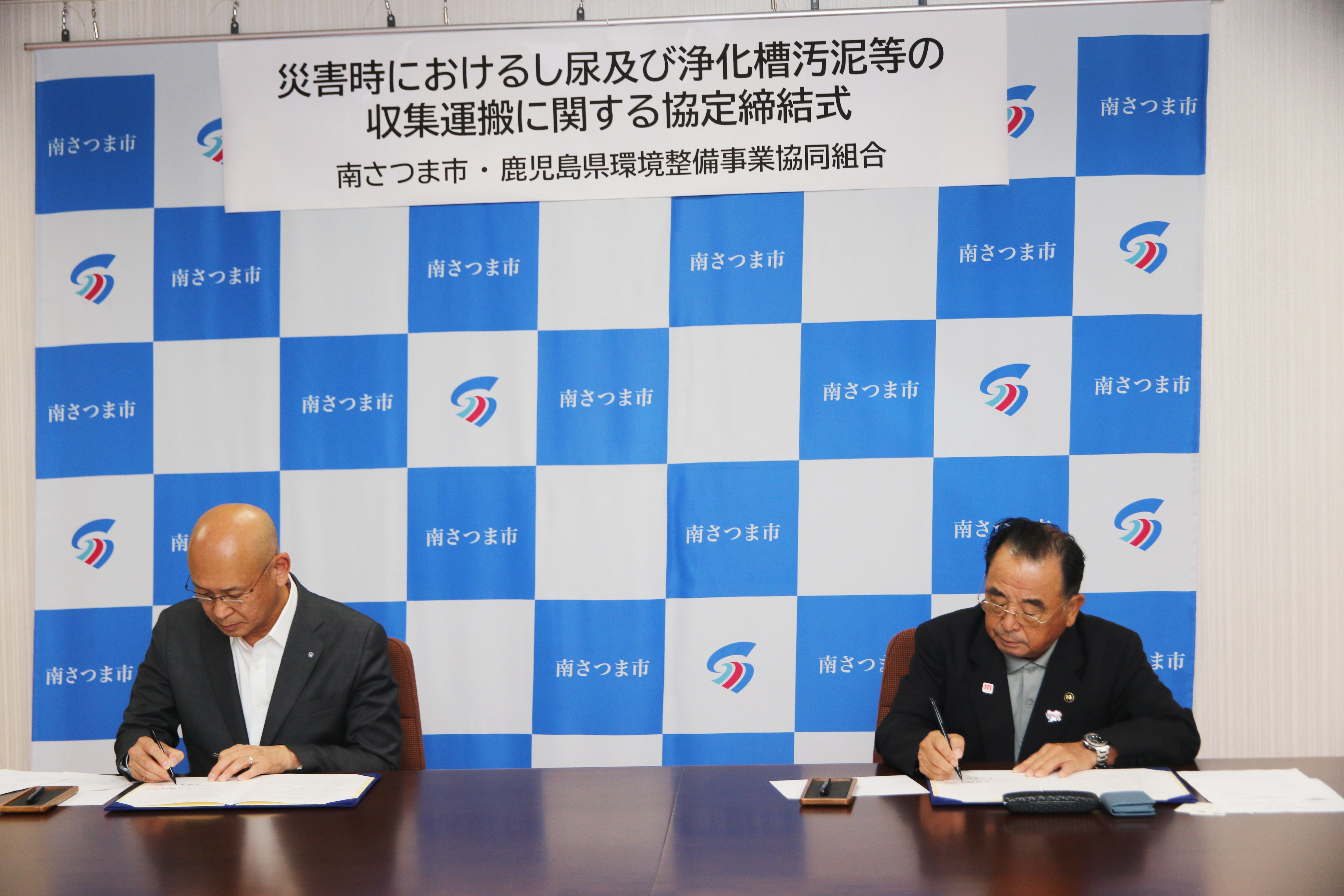 鹿児島県環境整備事業協同組合と「災害時におけるし尿及び浄化槽汚泥等の収集運搬に関する協定」を締結しました。