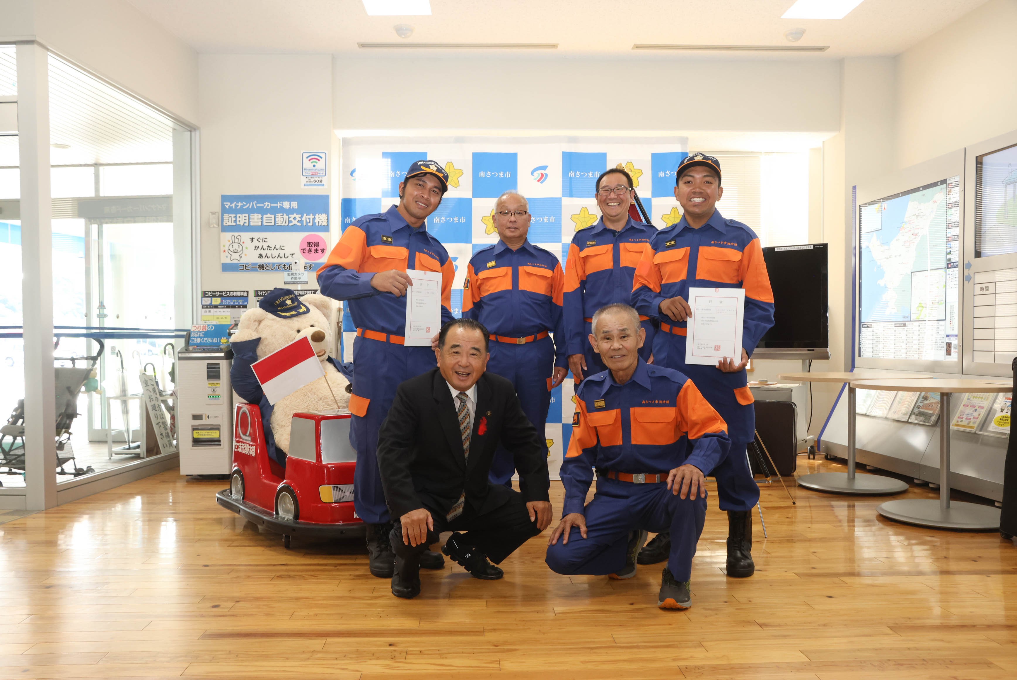 笠沙方面隊野間池分団に所属されるお二人ですが、市民の皆様が安心・安全に暮らせる地域づくりのため、若い力を存分に発揮されますことを期待いたしております。