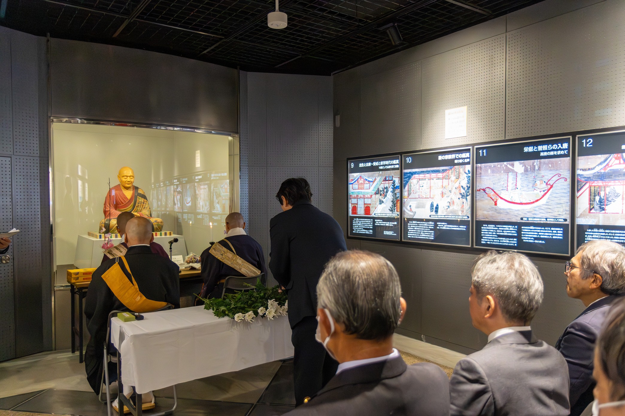 唐招提寺の岡本元興(げんこう)長老や東大寺の橋村公英(こうえい)別当等による記念法要が執り行われました。その後、岡本長老と橋村別当による講演のほか太極拳の演武が披露されました。