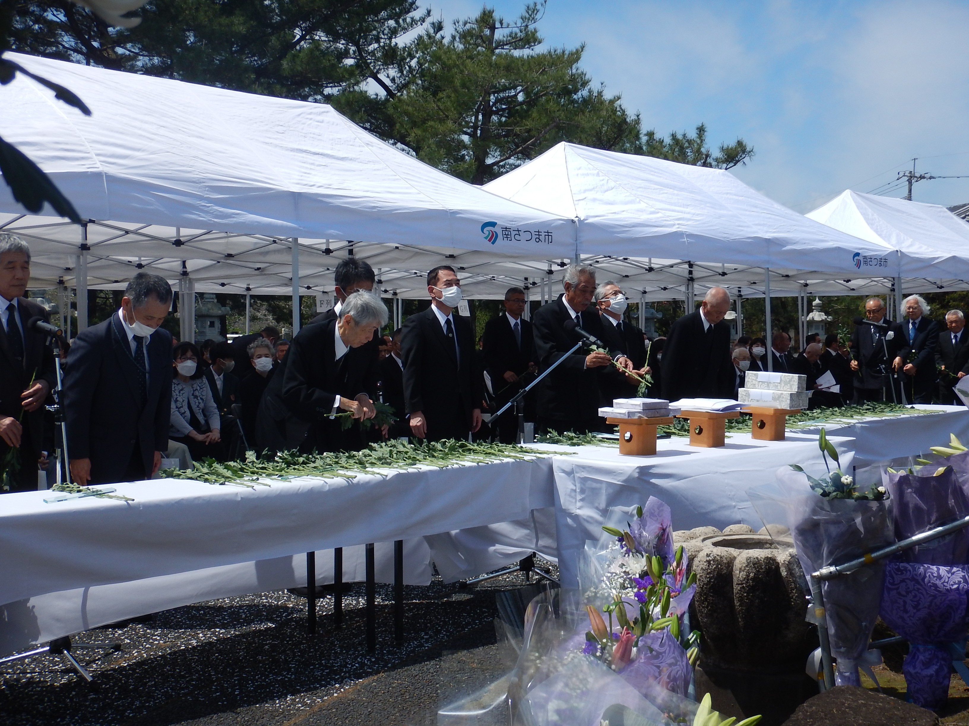 全国各地から、ご遺族、旧隊員、ご来賓、陸上自衛隊国分駐屯地音楽隊等、およそ320名の方々にご参列いただき、79年前にこの地を飛び立った201名の特攻隊員へ慰霊のことばを捧げ、献花を行いました。