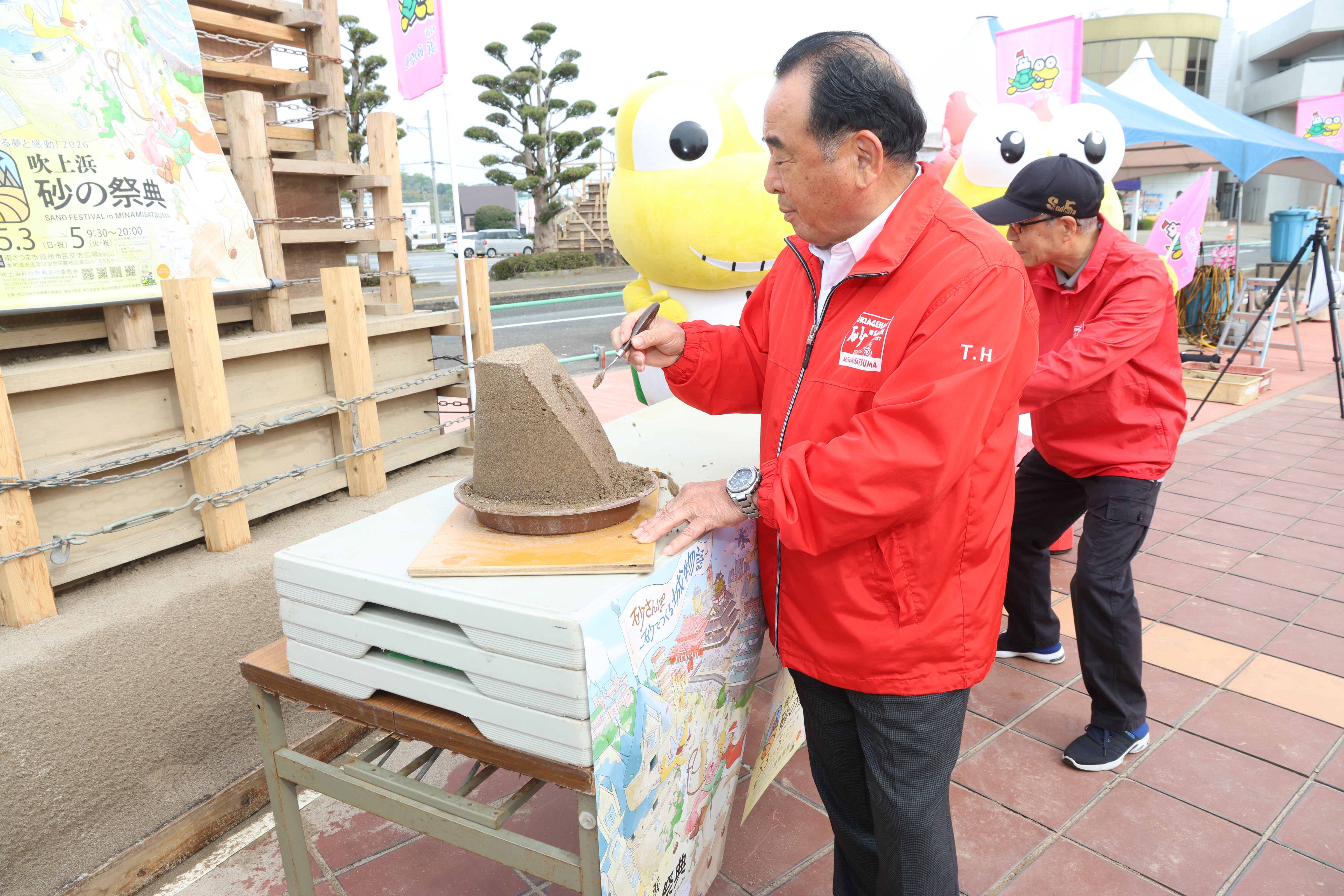「2026吹上浜砂の祭典」メイン会場となる市役所前広場で砂像制作開始式を行いました。