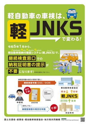 軽JNKSというオンラインシステム上で、車検の際、軽自動車税の納税確認ができるようになります。そのため、車検時に軽自動車税の納税証明書提示が原則不要となり、納税証明書を紛失しても再発行の必要がなくなります。